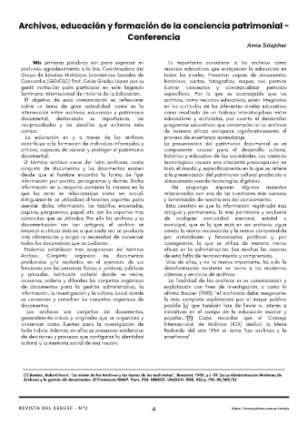 documental, destacando su importancia, las educadores y archivistas, por cuanto el desarrollar
