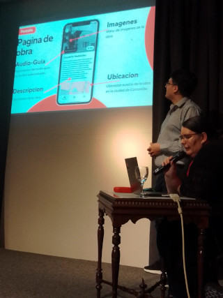 En el marco de la Semana de los Museos y el Patrimonio, desarrollada en la ciudad de Concordia del 17 al 23 de noviembre, se presentó la aplicación móvil “Recorridos patrimoniales: tras las huellas de Alejo Martínez (h)”, a cargo de la Licenciada Flavia Frigo y de Alan Maillet, estudiante del profesorado de Historia (Profesorado Superior de Ciencias Sociales) La actividad consistió en la presentación de una app diseñada para realizar un recorrido patrimonial autoguiado por la ciudad, centrado en las obras del arquitecto Alejo Martínez (h). La herramienta, en formato beta, propone un itinerario urbano que integra geolocalización, información histórica, registros visuales y recursos de audio, con el objetivo de facilitar el acceso público al patrimonio arquitectónico moderno de Concordia. La propuesta articula investigación histórica, divulgación patrimonial y recursos digitales, permitiendo recorrer el espacio urbano desde una perspectiva histórica y territorial. El recorrido pone en valor el legado arquitectónico de Martínez (h) y promueve una lectura del patrimonio como construcción social, memoria colectiva e identidad urbana. La presentación se inscribió dentro de una agenda de actividades abiertas a la comunidad, orientadas a la difusión y puesta en valor del patrimonio histórico, cultural y simbólico de la ciudad de Concordia, promoviendo la vinculación entre prácticas académicas, educación y espacio público. La Semana de los Museos y el Patrimonio fue organizada por la Subsecretaría de Turismo de la Municipalidad de Concordia, junto al Ente Mixto Concordiense de Turismo (EMCONTUR) y la Subsecretaría de Cultura y Educación. Este tipo de iniciativas se enmarca en los objetivos de GEHESC vinculados a la investigación histórica, la preservación patrimonial y la proyección comunitaria de las producciones académicas, incorporando el uso de tecnologías digitales como herramientas de mediación cultural.